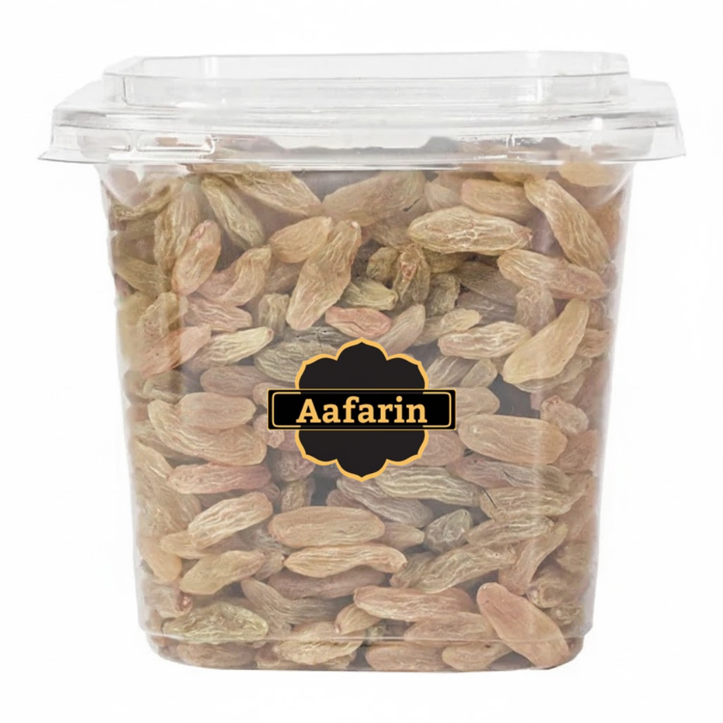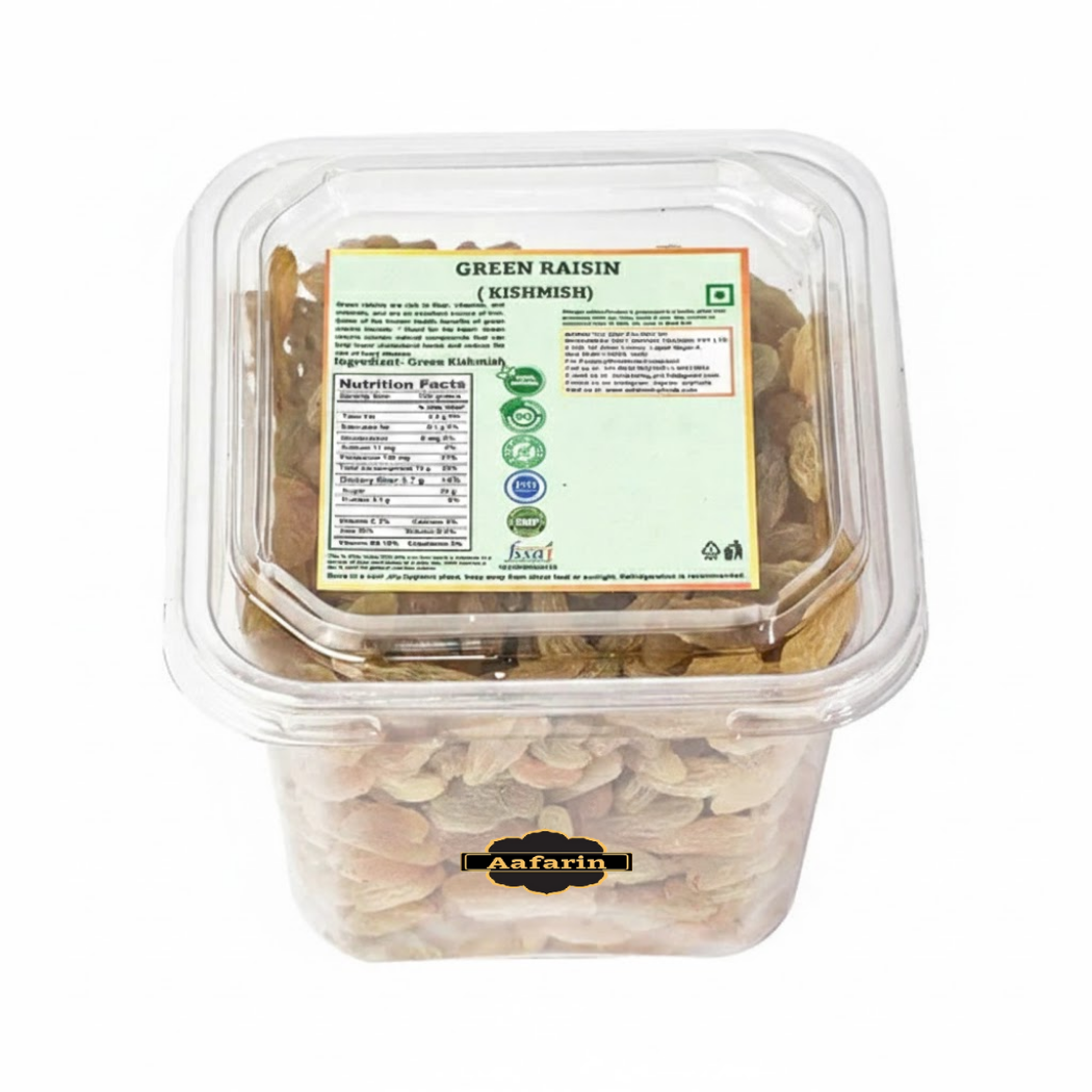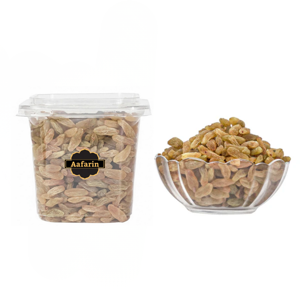 Experience the unmatched quality of our Premium Afghan Green Raisins, naturally sun-dried to preserve their vibrant green color and signature sweet-tart flavor. These plump, seedless delights are rich in iron, antioxidants, and natural sugars, making them a wholesome choice for daily snacking.